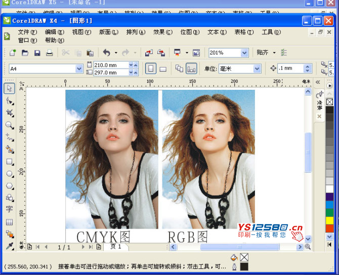 下圖是 X4里顯示的顏色,CMYK圖片顯示顏色灰且暗,RGB顯示相反是正常的,這就是為什么很多朋友喜歡以CDR文件里用RGB圖片的原因,但,設計的朋友不了解RGB圖在CDR里經過分成四色后,其RGB圖片的顏色印刷出來都失真了。。。。要知道,在印刷界Adobe 才是霸主地位,其色彩引擎是業界標準,而CDR用的是柯達色彩引擎。。。不同的引擎轉換RGB為CMYK圖的顏色值是不同的,其中有些色值變化還真的是很大哦,而做開印前的朋友都了解,如果要在CDR里設計排版,RGB圖片則應該在Photoshop里轉換為CMYK才導入CDR軟件里排版,為之正道;但是很多做設計的朋友在做稿的時候,并不是這樣做呀,直接就把RGB圖片導入CDR里就做稿了,