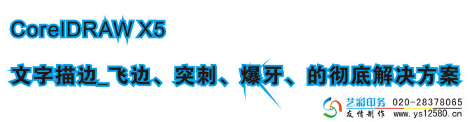 很多時候我們要在一些文字或圖形會做一些描邊的效果以突出文字的視覺效果,但在CorelDRAW 12以上的高版本(10和11版本我基本上沒有用過,原因不詳,因為都是過渡版本)都會出現文字描邊_飛邊_突刺_爆牙的情形(注:飛邊_突刺_爆牙等描述只是我們行業內大多數人的叫法,好像在書面上還沒有一個準確的描述,反正就是如下圖的情形。。。